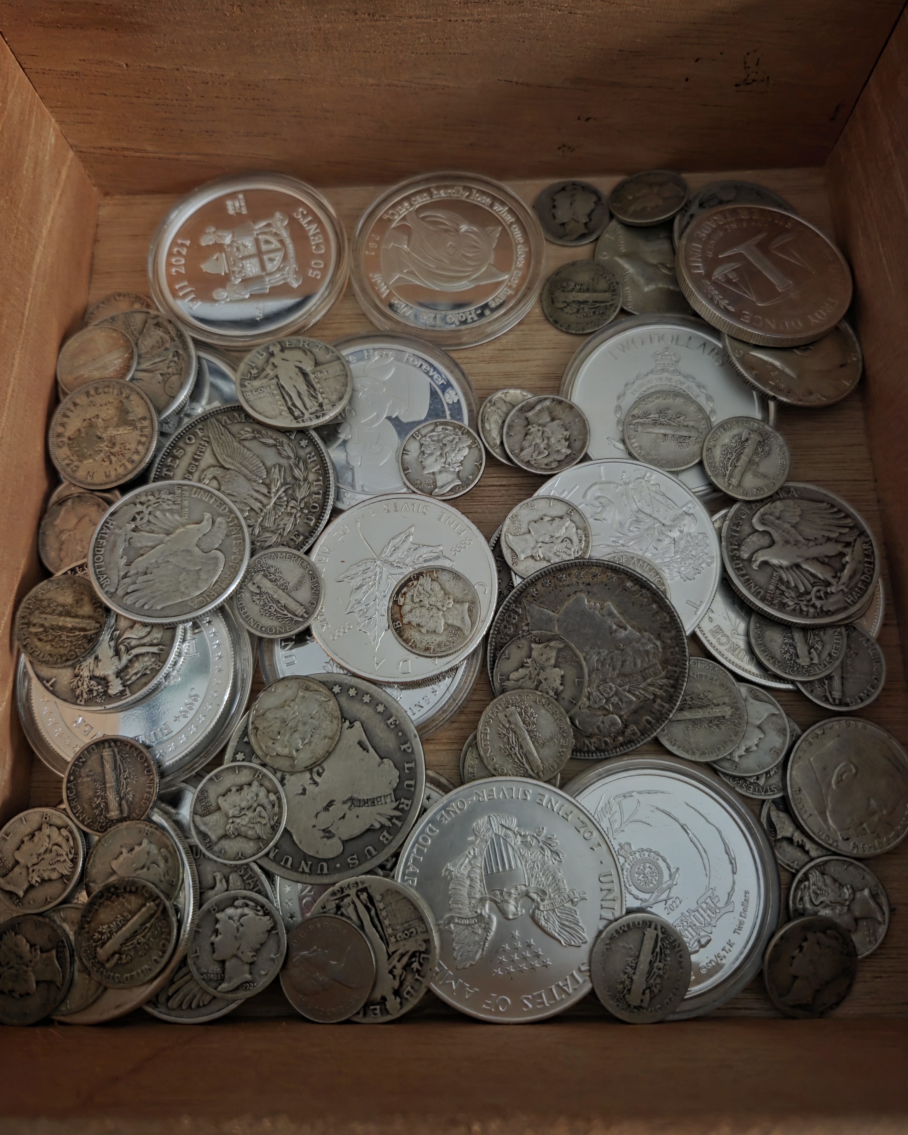 >>61758767That's dumb, things like those are what thieves check first. My place has been broken into, they missed the silver in my sock drawer because my drawer is one of those see through storage units and they missed the major silver bars left above cabinets. Put your silver in a non descript sack and store it somewhere where people don't keep valuables.