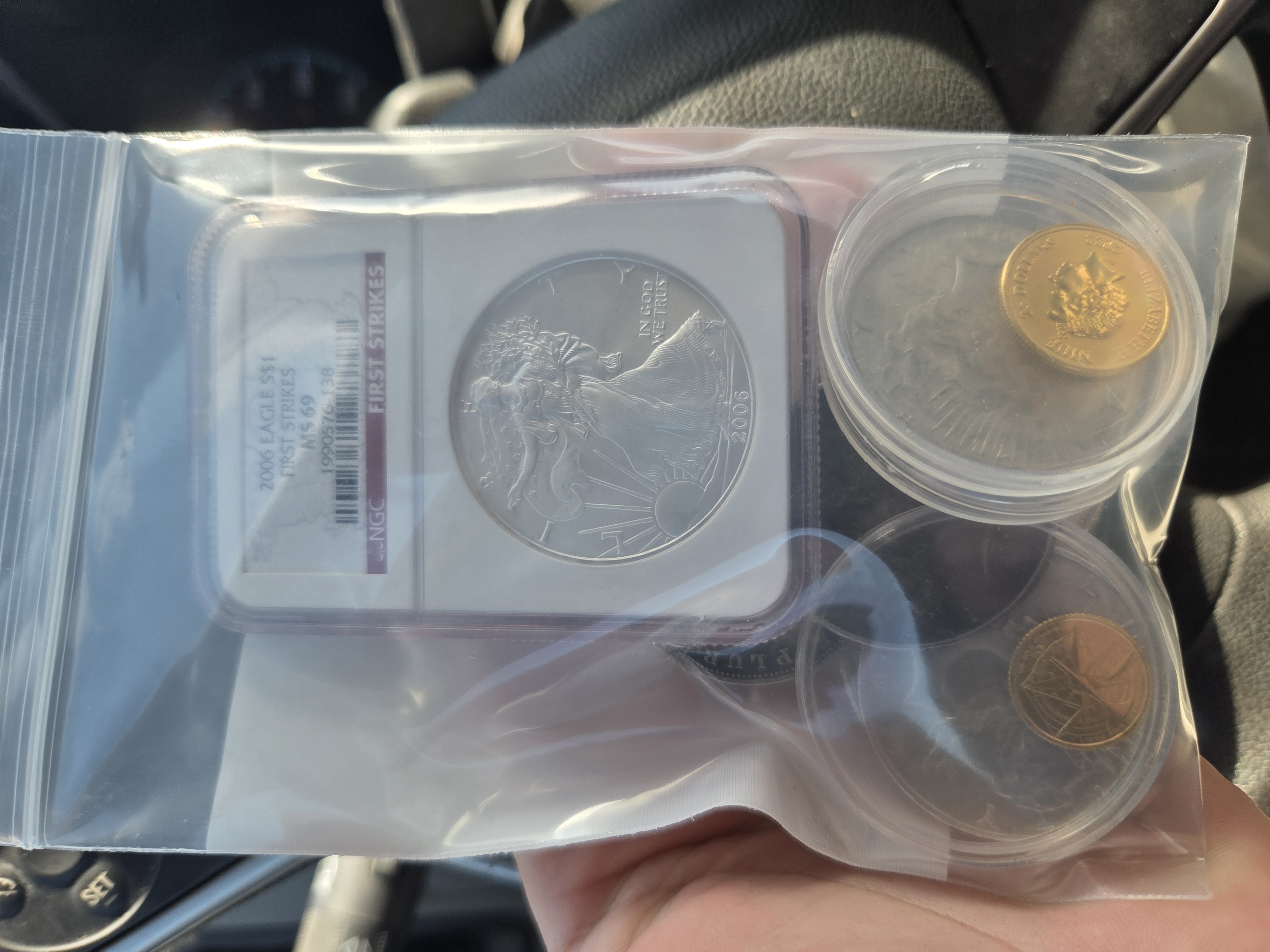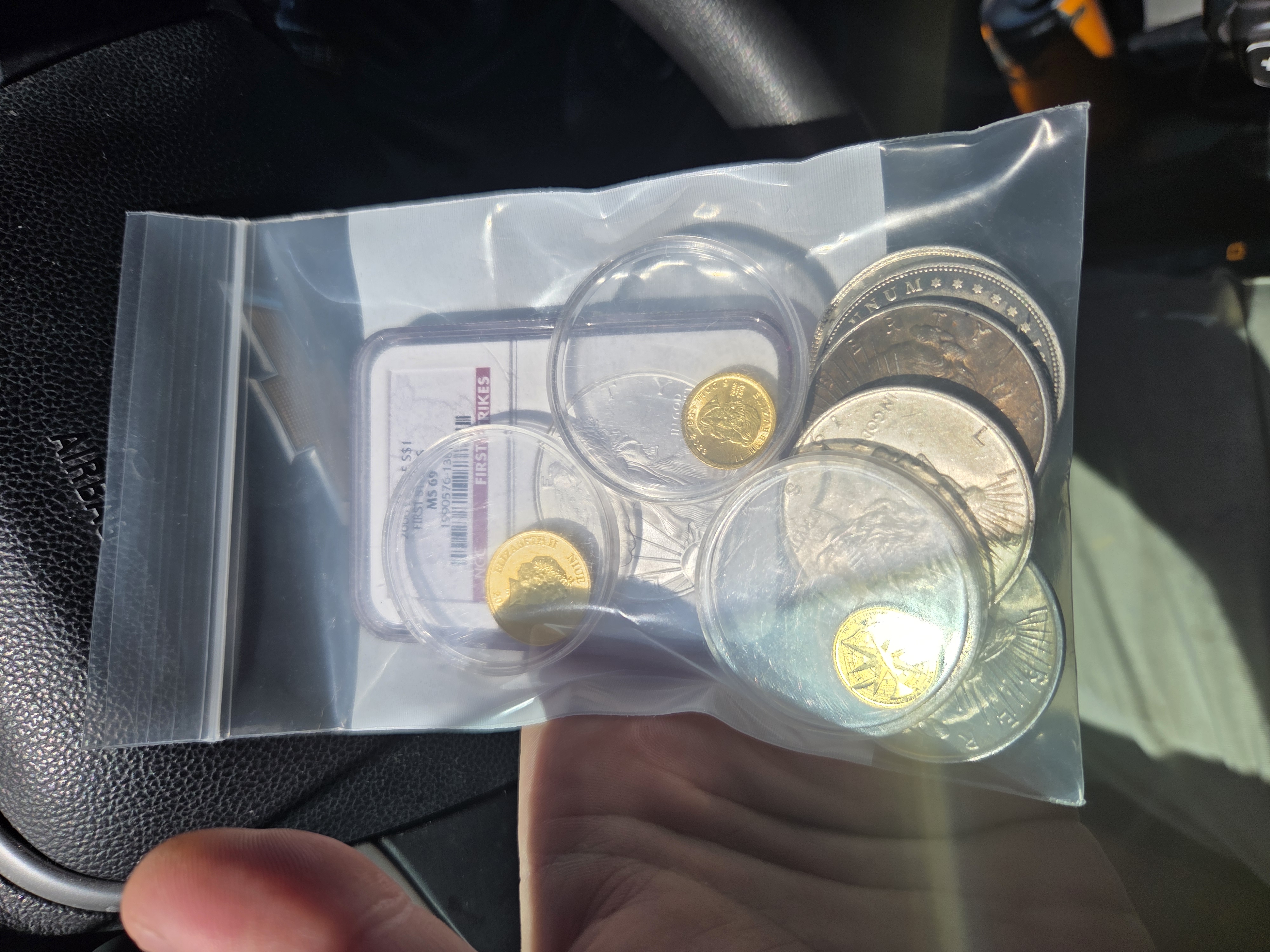 >>61759086>I was able to trade (2)1/10 gold rounds>For>3 Morgan>3 Peace dollars>1 ngc 69 Silver eagle>Plus $450 fiatnice trade