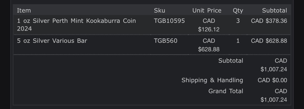 >>61761590>I don't know where to start and where to go.Ask yourself what you want first. (for me it's long term investment split evenly 50/50 according to the Gold / Silver Ratio (GSR), though I buy cool looking Numismatic coins when they appear)Then, research where is best sellers for you is, is it a local coin store (lcs) or is it an online bullion dealer like Apmex, or perhaps you'd rather order directly from a mint like the Perth Mint? (I've found an lcs that sells with a premium only $7 over spot that I use for bullion, but buy from ebay/mints and online dealers for specific numismatics I like.)