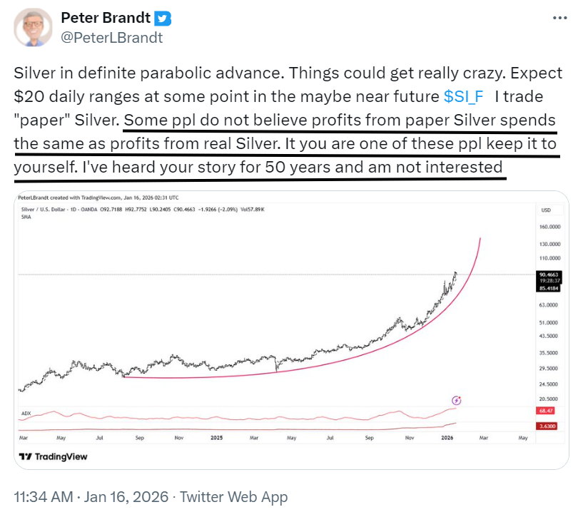 >>61759273There were literal college students who had dollars who were buying up buildings for an ounce of gold. No one trusted the Mark and they wanted even foreign currency if they could get it. Eventually, your fellow citizens who work to earn a paycheck are paid in an asset that has no value so they become uneconomical to sell goods and services. Landlords have bankrupt tenants and they can't even afford maintenance and utilities as well so suddenly these "assets" quickly invert and return to the depreciating assets they actually are.Again, Weimar had different conditions than we will have here due to the logic of Germany being REQUIRED to sell their Marks for another nation's currency before repaying them. That is a very easy trade to front-run as the outcome is obvious. (especially in hindsight).>>61759572He's not wrong in the sense that if you wanted some short term exposure to silver that you can buy/sell quickly in a brokerage this is an option if you are chasing paper products. The danger is thinking paper silver will replace physical ownership. I tend to err of the cautious side and I want the lions share of my wealth off of the table and out of reach. Having secured that rock-solid foundation for myself, I can entertain swing trading silver. We all have to get through this life as best we can and if you can lock in paper profits on an upward swing from $86 back up to $120 then more power to you.