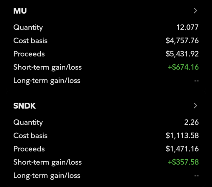 >>61762052I calls em like I sees em. I have a little MUU myself, but I bought it with money I made from selling a wee bit of MU stock after it had gone up 20%. I figure I can't get burned that way, and it acts like nitrous oxide on my upside.>>61762055I'll be watching what happens in thinkorswim with my finger on the trigger, natch. But I ain't selling either.>>617620695/06/2026