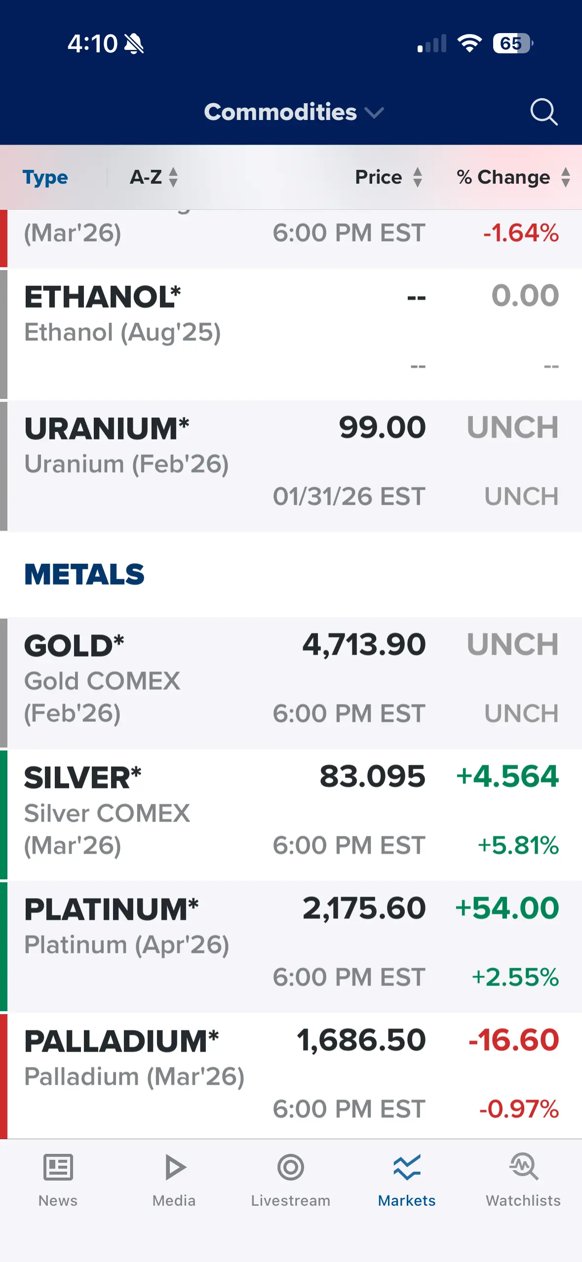 Uh Comex and LBMA I think