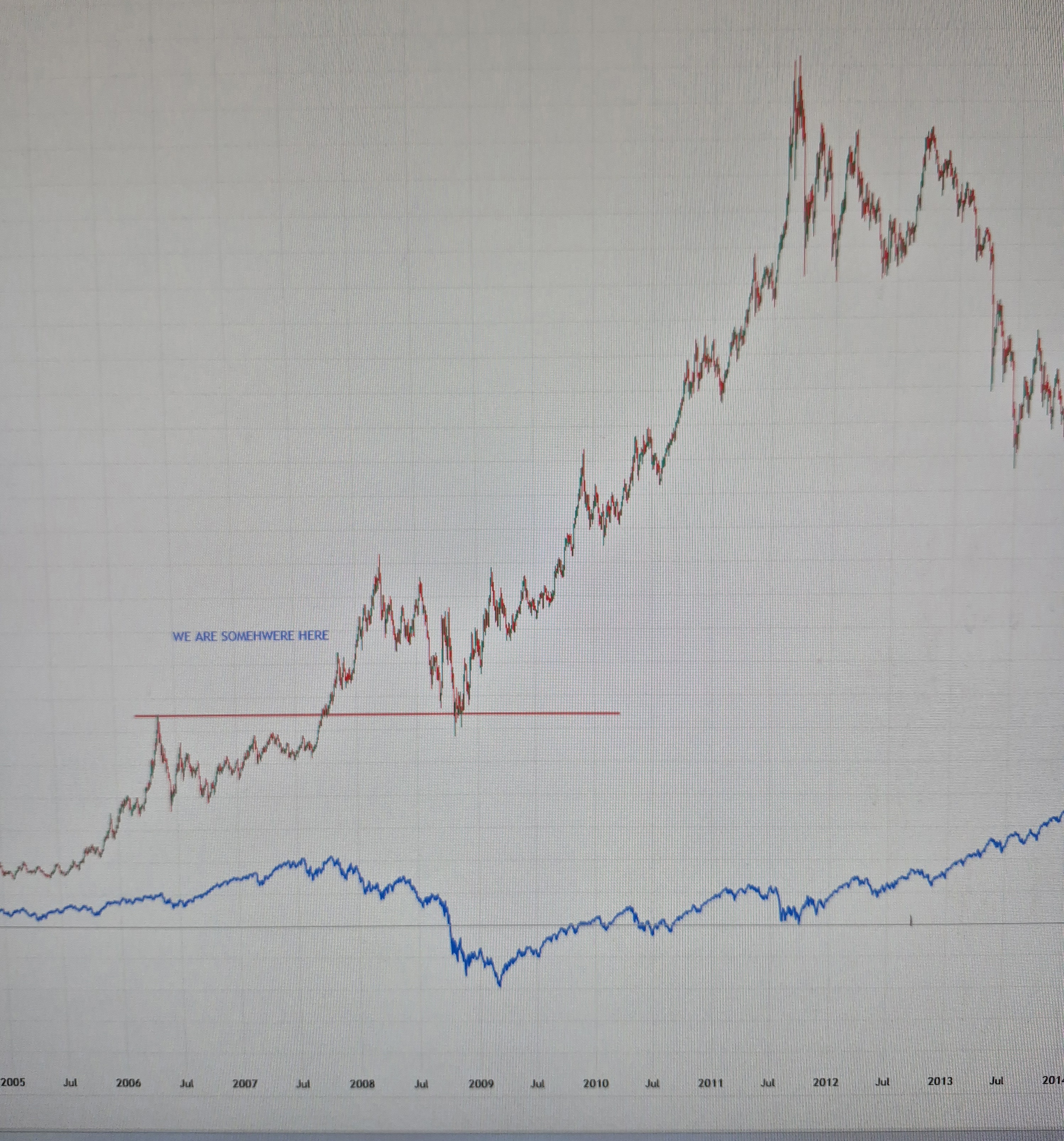 Your financial future depends on accurately determining where we are on this graph. Based on the 400%+ move from the last bear market low on gold I'd have to say that we are at the part where the S&P rolls over and gold retraces to the first selloff before testing and going to the moon in a couple of years.
