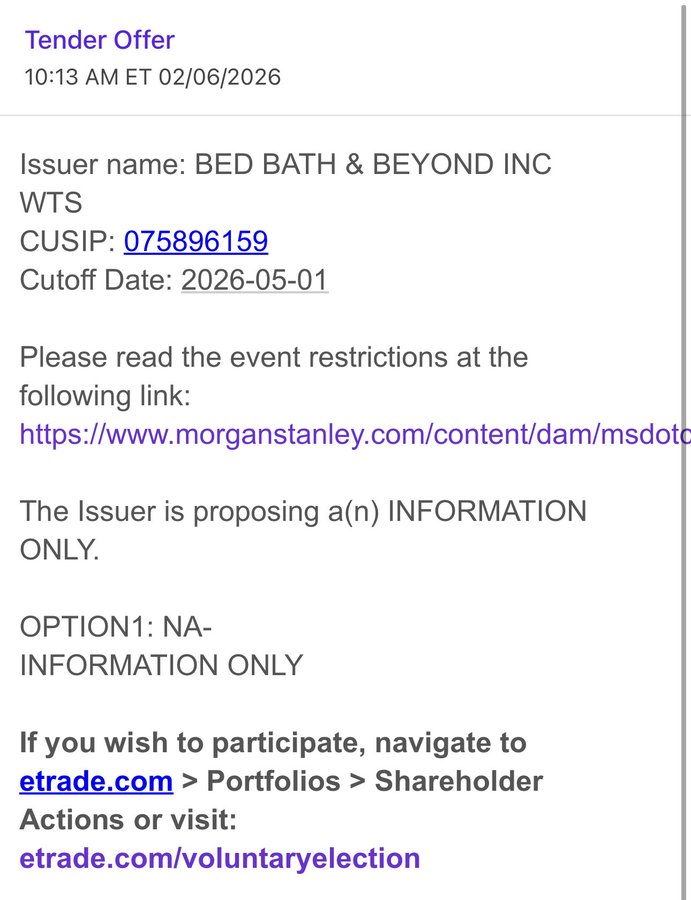 >>61820513Correct. So why is BBBY not using their own CUSIP to distribute their warrants? They used BBBYQ's CUSIP. I don't know why people don't seem to grasp that the outcome of the BBBYQ CH11 has already transpired behind the scenes. Even if things are wrapping up behind the scenes to prepare for the final decree, the outcome is ALREADY known.