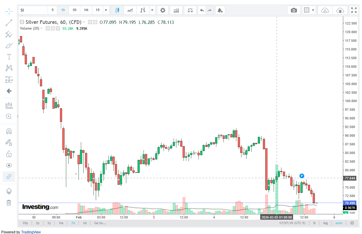 >>61805457>>61805432It dropped more than 10% in one hour on Jan 30th and they didn't stop it. David Jensen wrote an article about it.>The CME COMEX has ‘circuit breakers’ in the silver market that halt trading for a period if extreme price movements occur to allow for a more orderly market. What the CME COMEX calls dynamic circuit breakers automatically kick-in when the price of silver drops or rises by 10% on a rolling 1 hour basis. We can see in Figure 1. below that from ~ 12:30 to ~ 13:30 Eastern Time, the price of silver - both cash/spot and futures - ranged between $91 /oz. and $75 /oz., representing an 18% range, and yet the CME COMEX automatic circuit breakers were not activated nor announced by the CME. Yesterday, I wrote a letter to the CME asking why this exception to CME COMEX rules occurred and will report their response when received.