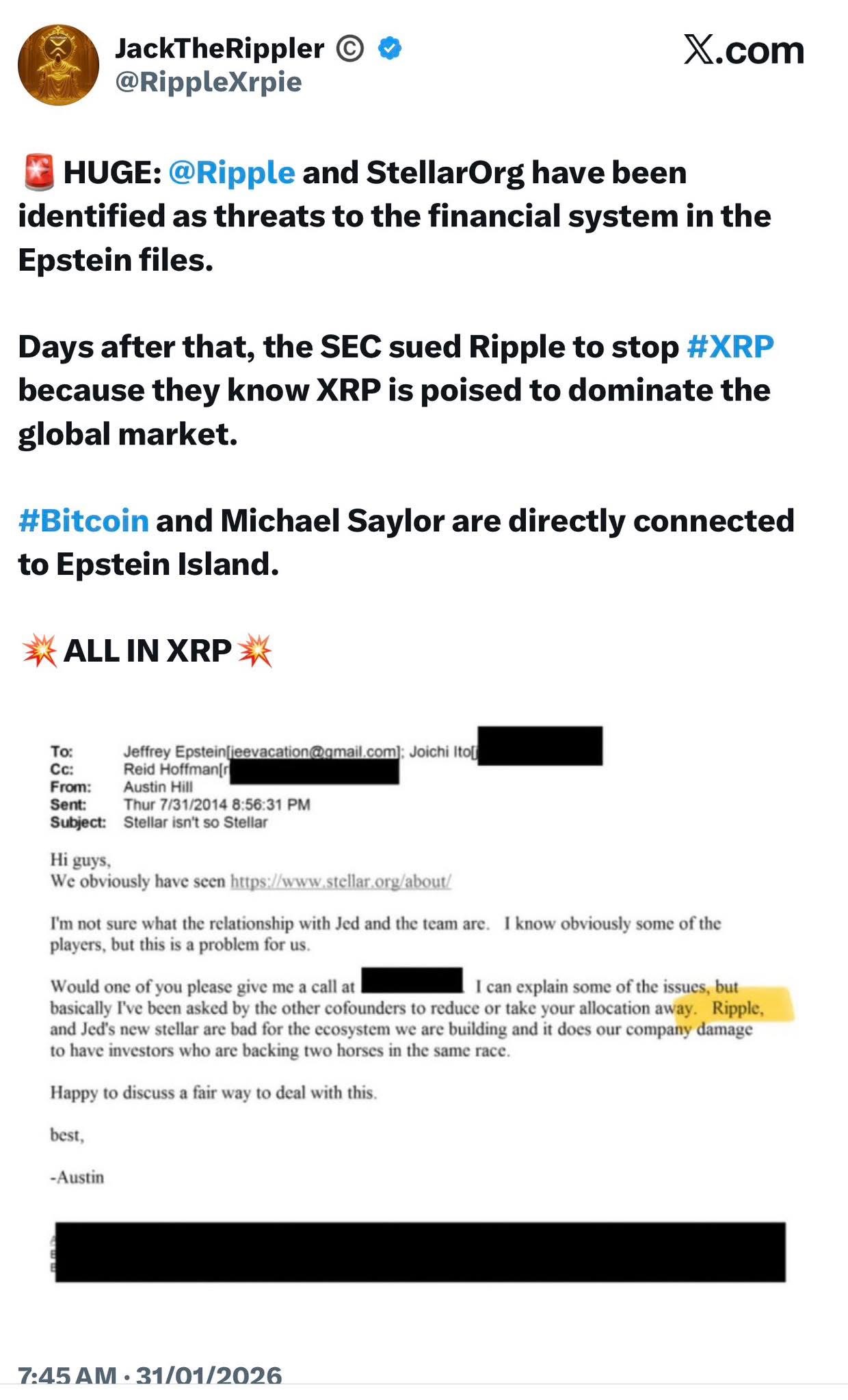 >>61830645The retard in that pic linked the wrong email.The one he posted proceeded JE reaching out to Jamie Diamond at JPM. JPM later filed the "tip" to the SEC, but that was also later after JE helped Gensler get in at MIT under Joi Ito and later the Fed. He needed to attach the more recent emails but social media fags are total braindead morons.