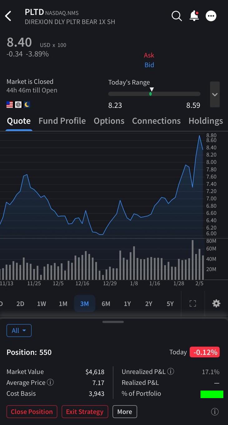 >>61818319I buyed some Palantir on Fri. I don't know how tf you are supposed to value that company, but w/e.