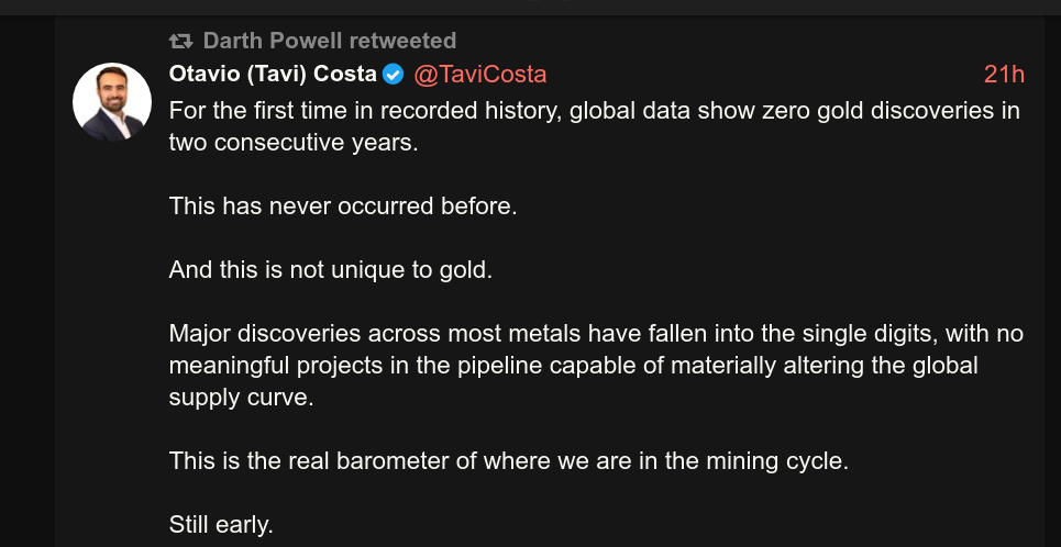 No new gold discoveries made in last two years.https://x.com/TaviCosta/status/2019866206807945228