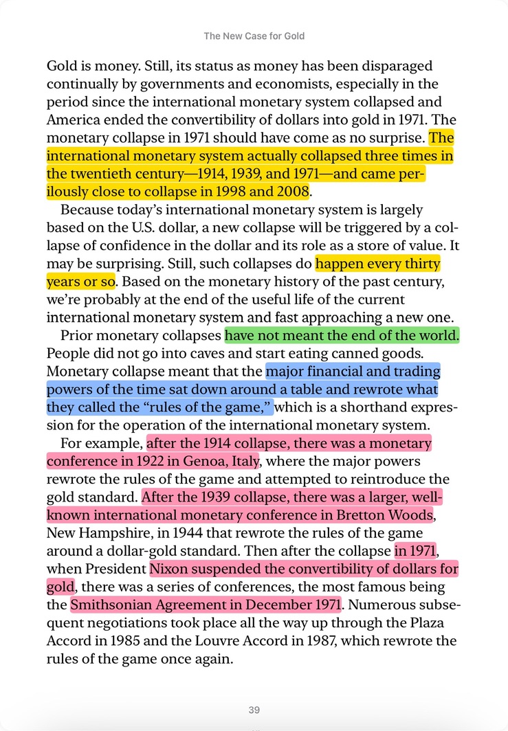 >>61819417>doesn't mean a small piece is worth a houseI don't understand what this has to do with what I typed out.>That's not how a normal market worksWe don't have a normal market now and we haven't had one the entire time any of us here have been alive... We're experiencing the beginning phases of an international monetary collapse.We've had multiple international monetary collapses over the past 100 years. We narrowly avoided one in 2008 and 2020 by kicking the can down the road.These kinds of events happen frequently enough, that it is not unwise to make plans for such an occasion. Things are becoming increasingly more precarious both economically and geopolitically.If you take nothing else away from this conversation then please just understand that these events do happen, and when they do, the people who hold physical metals typically endure these kinds of events better than those who don't. If I'm making any real argument here its that none of the shit we're buying is a bad investment given the current global financial situation, and I think that the main argument that most of us here make is that everyone else should be more financially cautious, and (counterparty) risk averse. If none of that shit matters or if sound money principals don't mean anything to you then idk why you're even here. If you're not buying and I'm not selling then we're just at an impasse until either you or I can't afford to pay our bills, and just based on our interactions here I'm pretty sure (and most of the people here would probably agree with me) that it's going to be you.