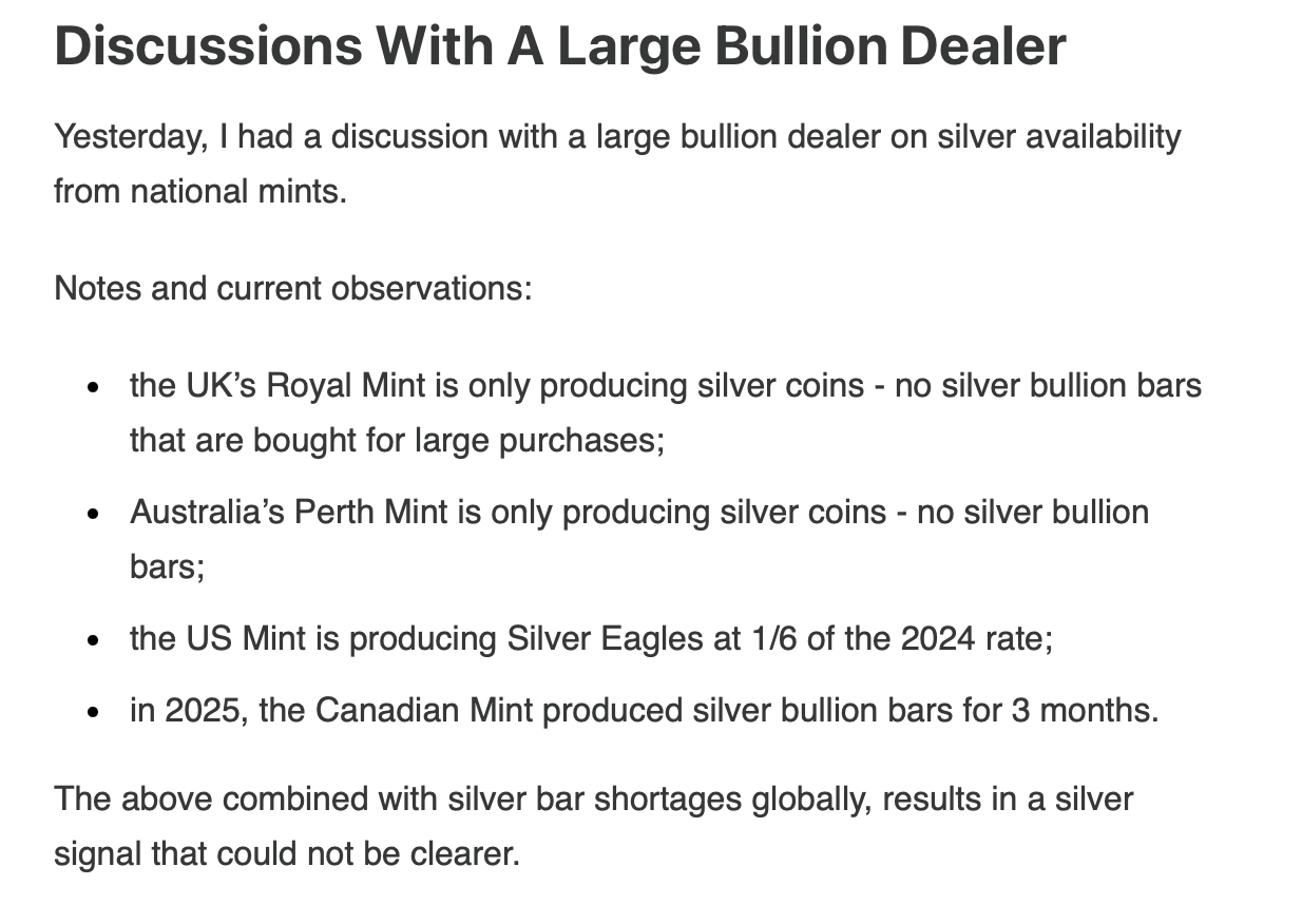 Noticed that some silver dealers are out of stock for silver bars now, though coins seem to be plenty available still. Gold also readily available as usual.>t. expensive VAT country