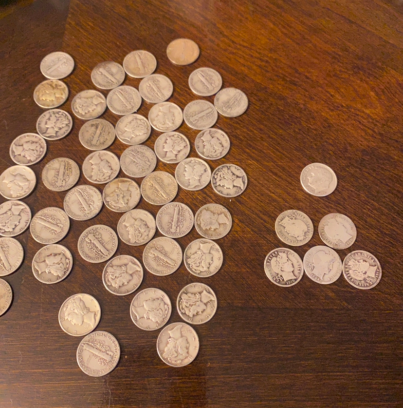 Five Barber dimes and a Roosevelt in the tube of mercury dimes from SD Bullion. All silver though so no biggie