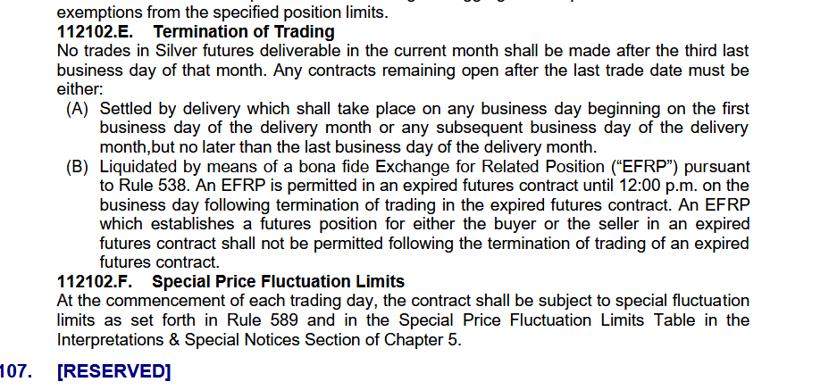 any other anons want to do some research with me? let's see how this cash settlement thing with comex might work out.I was initially curious is the cash settled price would be an average, but it seems like it is based on the day's price.but how about we do some reading and share.https://cmegroupclientsite.atlassian.net/wiki/spaces/EPICSANDBOX/pages/457415360/Silver