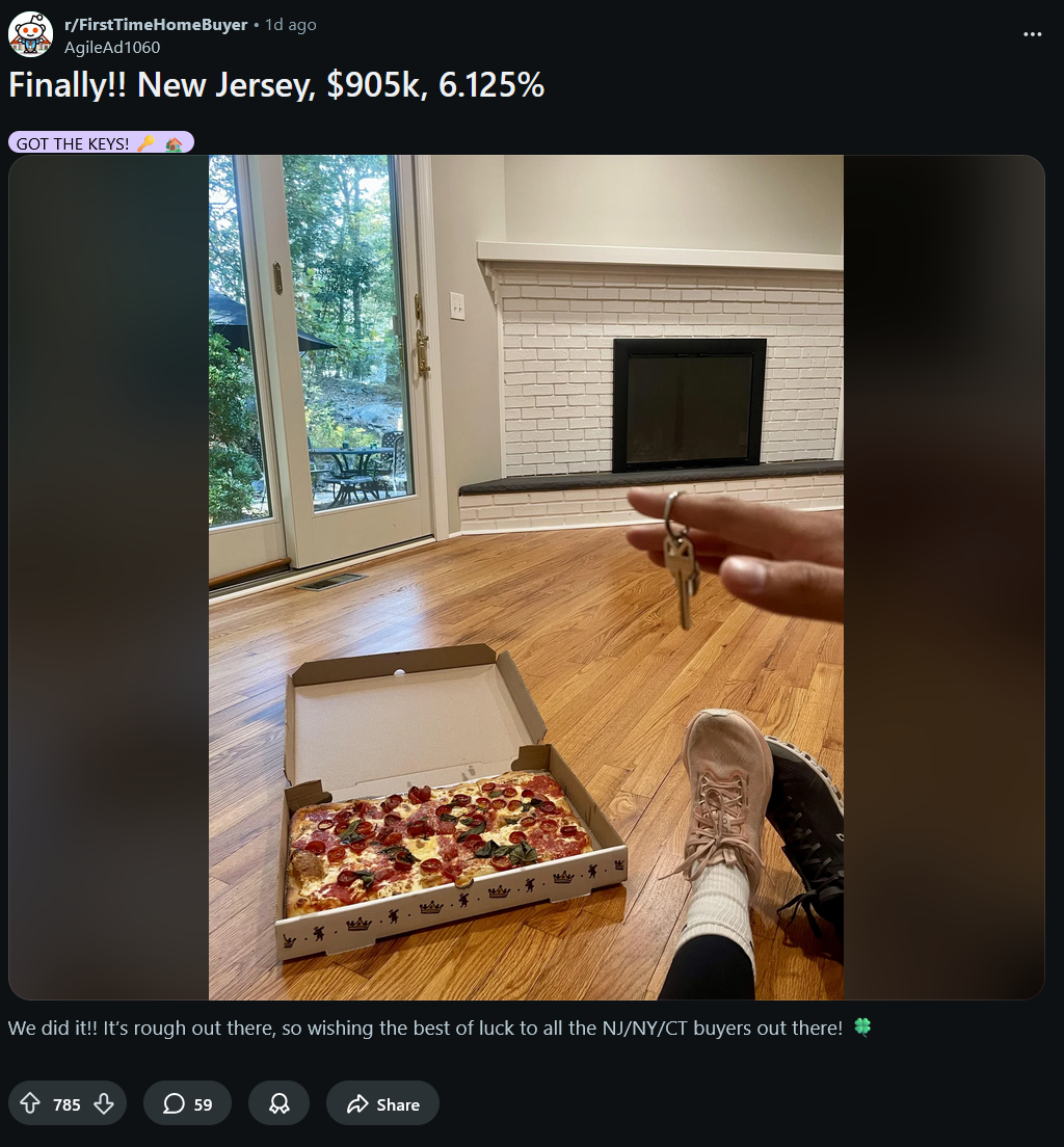 >Closed on our home in CT. $1.4M, 8.6% fixed.>Years of planning, disciplined saving, and underwriting risk instead of waiting for perfect conditions.>High quality asset. Fixed payment. Optionality if rates move.>Celebrated with pizza in our own kitchen.>Long term mindset wins.