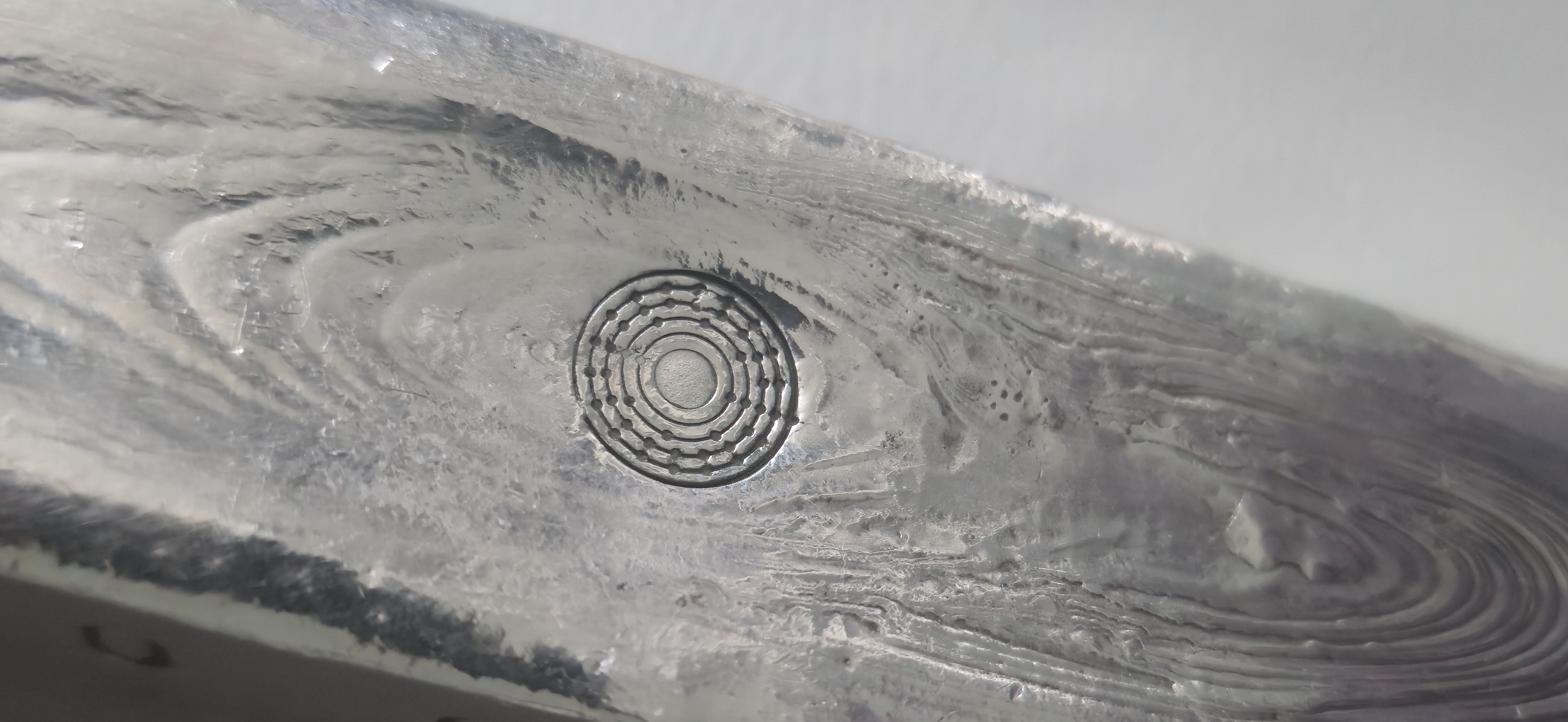 >>61822581It was called "Wood pour", but the owner sold it to me below spot (very rare here) and I think it's because it literally looks like a log of shit.When I showed it to my friend, he immediately burst out laughing and said "You bought a silver shit?!" so the authors wood bark intent has clearly not been conveyed in the piece.Here's the underside, it's 9.9oz and hallmarked