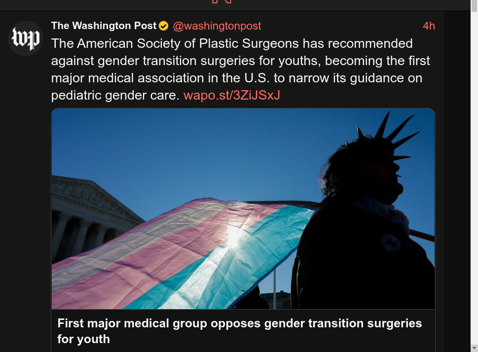 >>61822472>But obviously she was being dramatic and wasn't speaking of her specific property.No shit! Things like this are good in the long run. Same as the 16 year old pooner who wanted her tits cut off, then changing her mind and winning a $2 million dollar lawsuit against the plastic surgeon who cut her tits off.Now the American Society of Plasitc Surgeons has come out against "gender affirming" surgury for minors.It only took one lawsuit. I'm hoping the same thing will happen with land acknowledgements.But stackers should still take this as a cautionary tale.