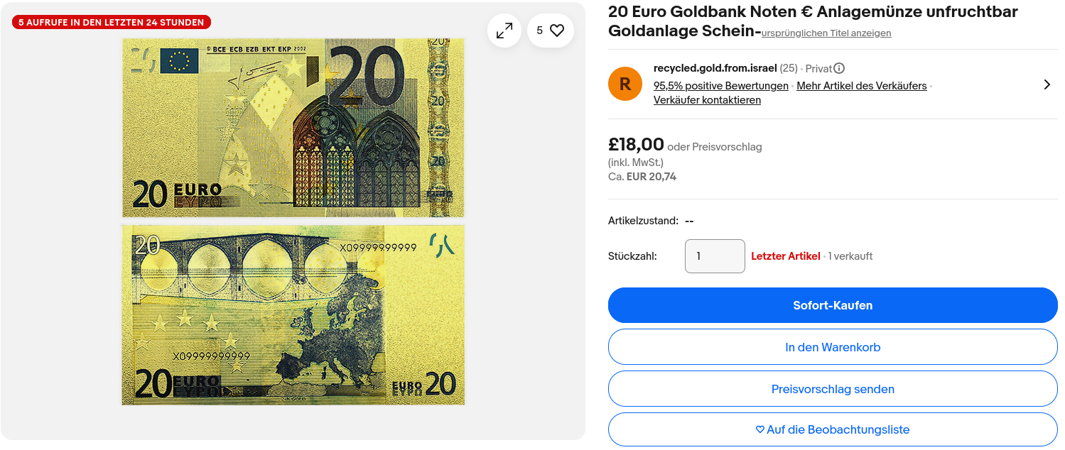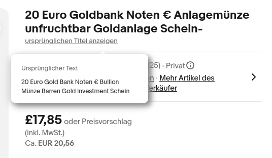 >Goldback Euros translated as "infertile" from "Münze"What did eBay's AI mean by this?