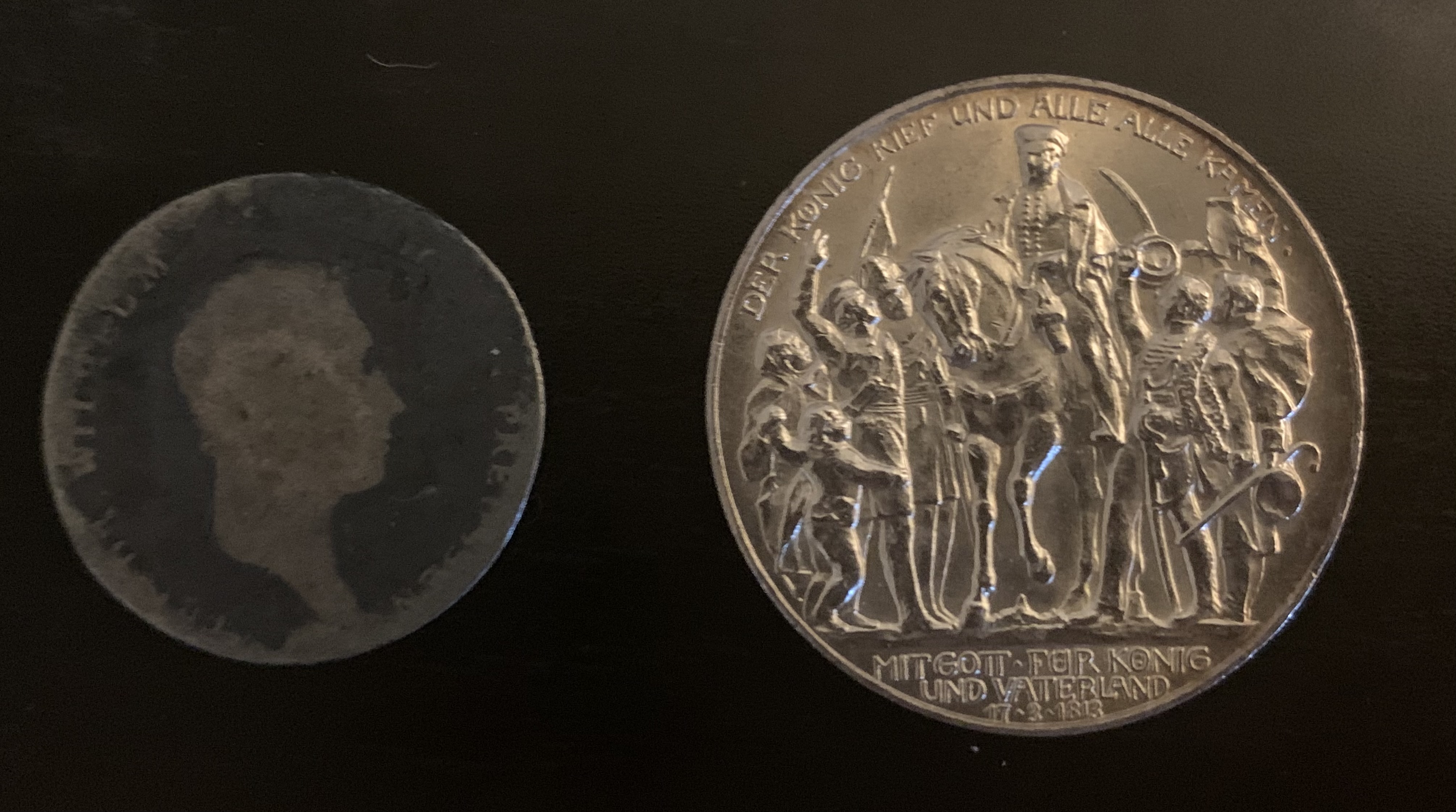 >>61824387The older coins with Wilhelm I got worn slick from years of use and were melted down to make newer ones. Gold never got circulated as much, so Wilhelm I 20 Marks are plentiful and low premium.For Silver, Bavaria tends to have the cheapest 2, 3 and 5 marks of the issuers that aren't Prussia.In 1914, Prussia did make some commemoratives for the 100th annviversary of Napoleon's defeat that had Friedreich Wilhelm III on them instead of Wilhelm II which are probably some of the best designed coins they made.