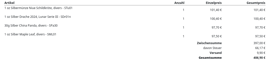 >>61824733Nice buys:)I like how much you all enjoy silver I would have gone 1/10 gold. You got fun things though:)