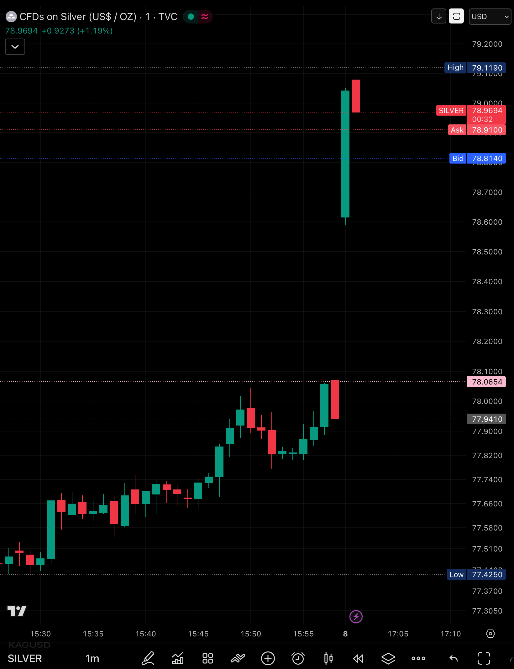 I don't know how weekend silver signals to the proper market but it's currently up slightly over spot