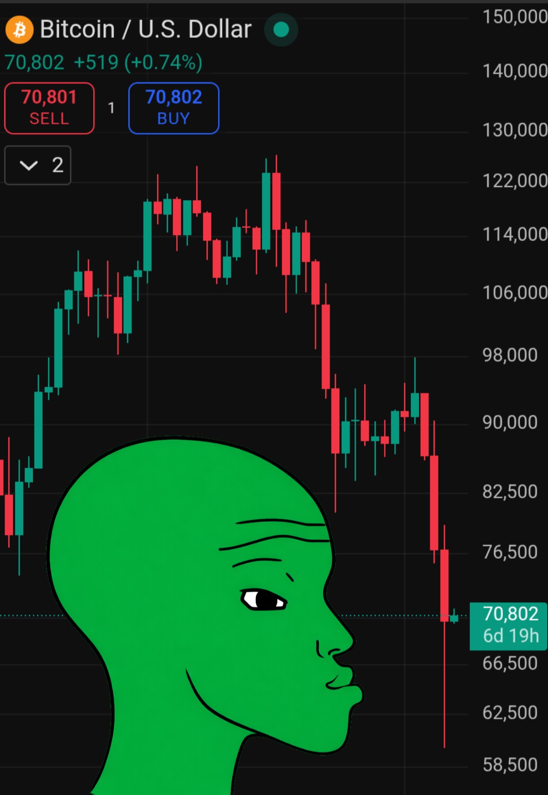 >>61825897The pattern is that it tried and failed to stay above 70k three times with declining volume. It's going back down.