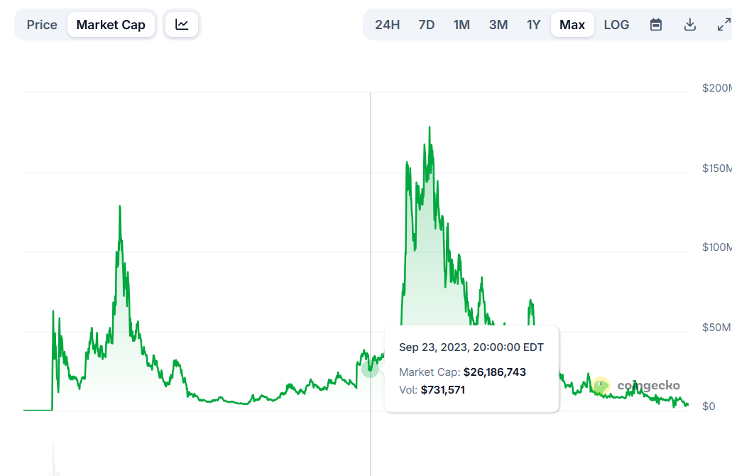 >see a new coin>oh cool I could accumulate this for the next alt season>look on coingecko>it's actually a migrated token from an older project that has been around since 2017 and launched their token in 2021/5 year old rebrandLolDead marketAnyway I also note, looking at a lot of charts, there actually was a big ALTSZN between august 2023 and december 2024 but after that point shit dumped and never recovered. I mean it probably sucks for LINKIES but a lot of other coins ran harder than in 2021, then crashed and never recovered.So it did happen, you were just investing in garbage.
