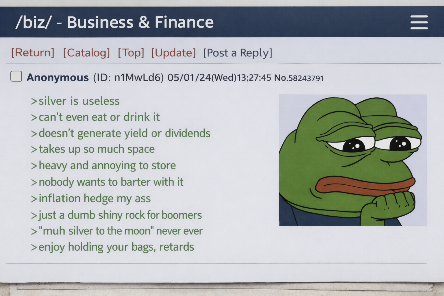 >>61830769If shit gets really bad then the fiat price of silver wouldn't matter