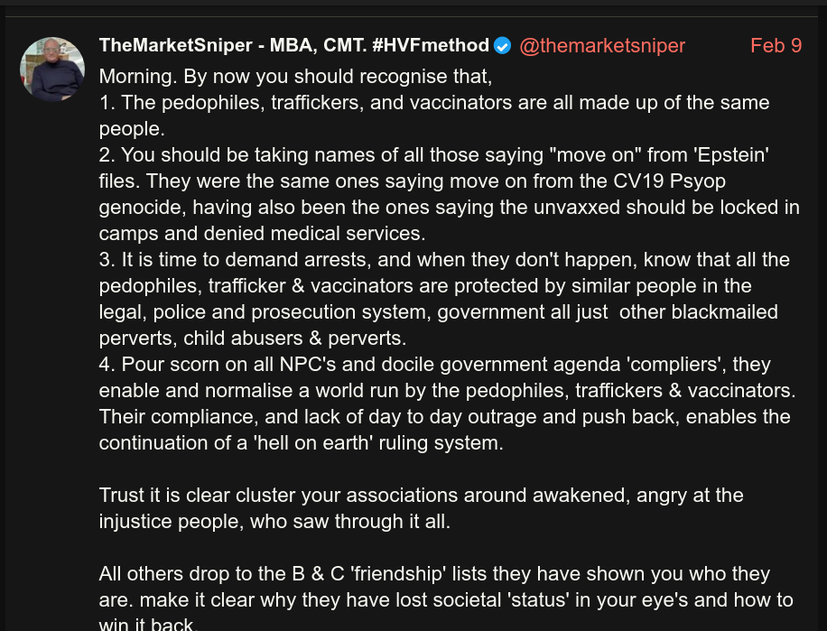 The reason why vaccines, Epstein, pedos, crypto and fiat debasement are relevant to the silver stackers is because they were all pushed by the same team that opposes you stacking silver and being independent from their control networks.We will all need to make lists of who are friends, even though we may have minor disagreements, and who are our foes, for whom the differences are irreconcilable, incompatible and existential.The people hiding the Epstein files and protecting the names of the pedos do not have the best interests of free citizens who have their own silver and to control their own destiny, in mind.