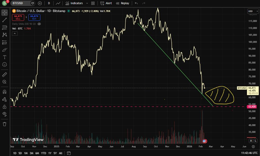 Its not looking good for the future for you either. Either you hold in that yellow zone. Or you break trend (green) AND/OR support (red). ZOOOOOOOM SPLLAAAAT!!