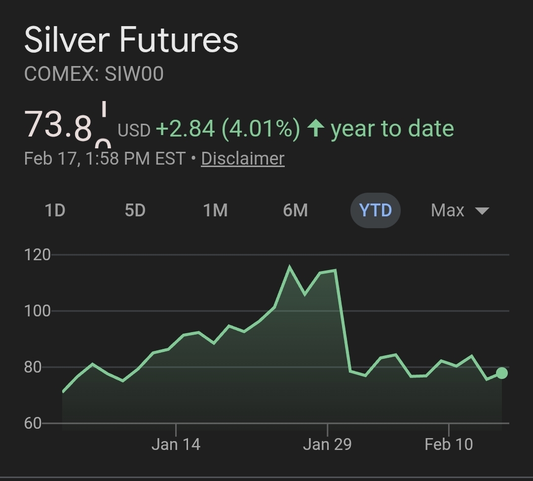 >>61866697>Even in your own screenshot it's actually up YTD>You made sure to cut out the rest of the chart that showed silver up 130% in the last 6 monthsmake better bait next time