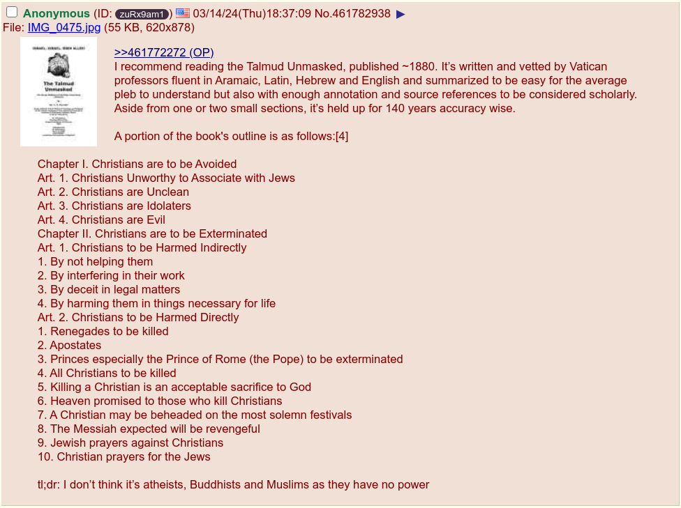 >>61881475Especially since the pentagon papers documented that there was no reason for going to war in Vietnam and no reasonable prospects of "winning".The US gold backed dollar was destroyed, 50k American lives lost, and untold American and other lives destroyed so that some jews could personally profit.Still no justice. I'm beginning to see a pattern here. Killing a million goyim is nothing if there is some benefit to be derived by jews.https://files.catbox.moe/s3norf.mp4>Gad. Shas. 2:2: "A Jew may violate but not marry a non-Jewish girl.">Baba Necia 114, 6: "The Jews are human beings, but the nations of the world are not human beings but beasts.">Nidrasch Talpioth, p. 225-L: "Jehovah created the non-Jew in human form so that the Jew would not have to be served by beasts. The non-Jew is consequently an animal in human form, and condemned to serve the Jew day and night.">Tosefta. Aboda Zara B, 5: "If a goy kills a goy or a Jew, he is responsible; but if a Jew kills a goy, he is NOT responsible.>Schulchan Aruch, Choszen Hamiszpat 388: "It is permitted to kill a Jewish denunciator everywhere. It is permitted to kill him even before he denounces.">Schulchan Aruch, Choszen Hamiszpat 348: "All property of other nations belongs to the Jewish nation, which, consequently, is entitled to seize upon it without any scruples.">Hilkkoth Akum X1: "Show no mercy to the Goyim.">Sanhedrin 59a: "Murdering Goyim is like killing a wild animal."