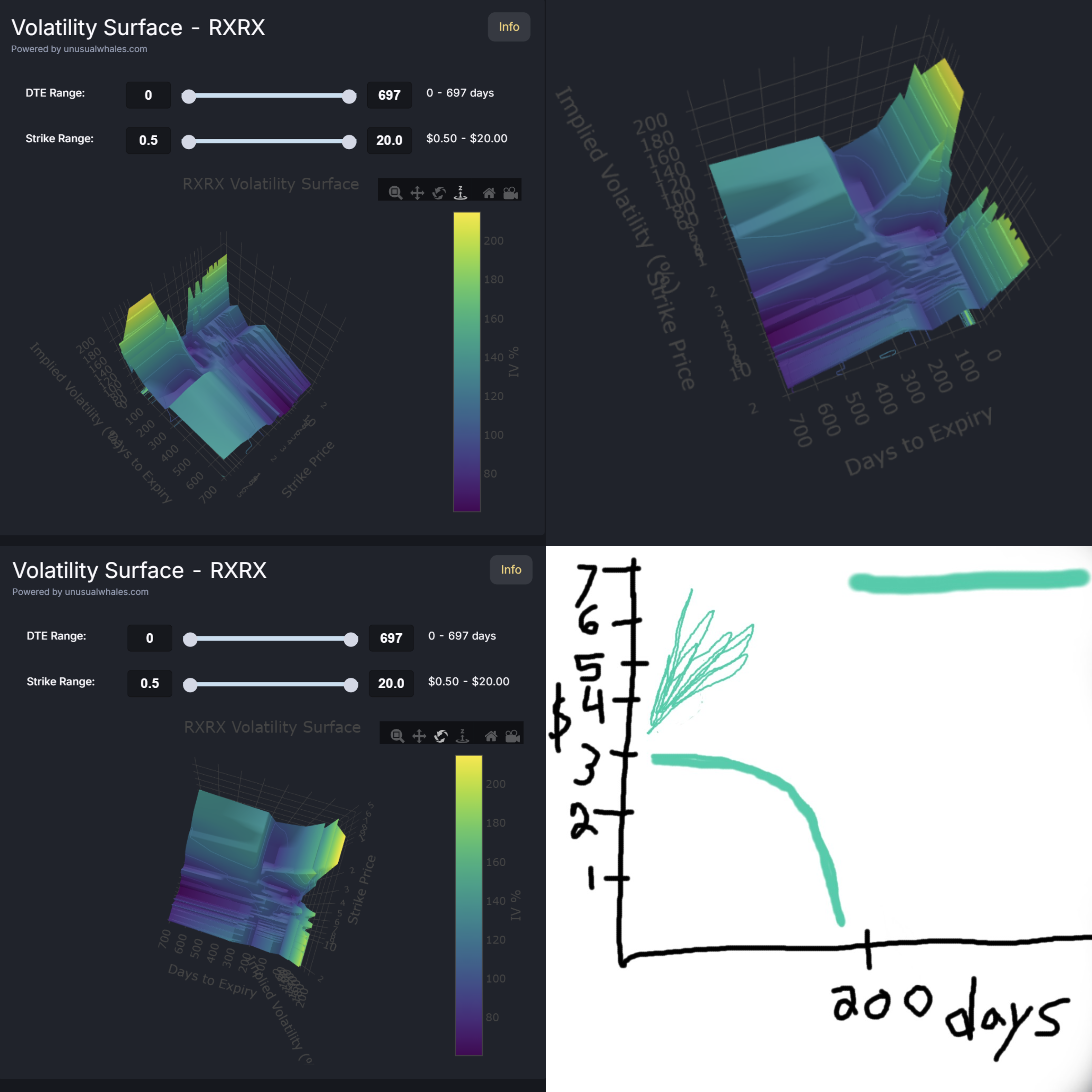 Henlo bigbrainsSo volatility surface is basically like a an electron orbital map where the low regions are your probability of finding a price at a given point, since the cross section at a given date creates the smile yes?As in this example where charted it out with line thickness representing implied corse for this particular stock where line thickness implies strength of expectation - basically electron orbitals.Plz explain as though you are talking to a retarded child.Thank you for your attention in this matter.