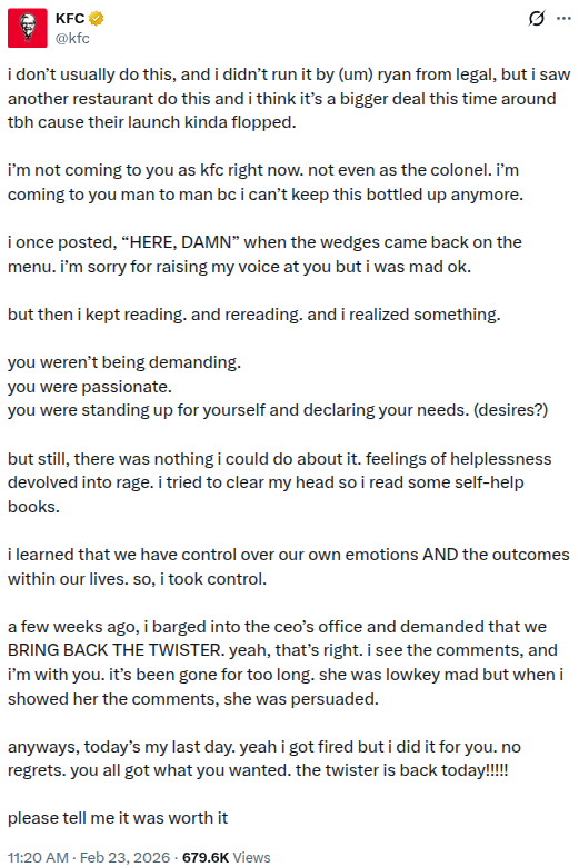 >schizoposting is now just a completely normal mainstream way to connect with your audience