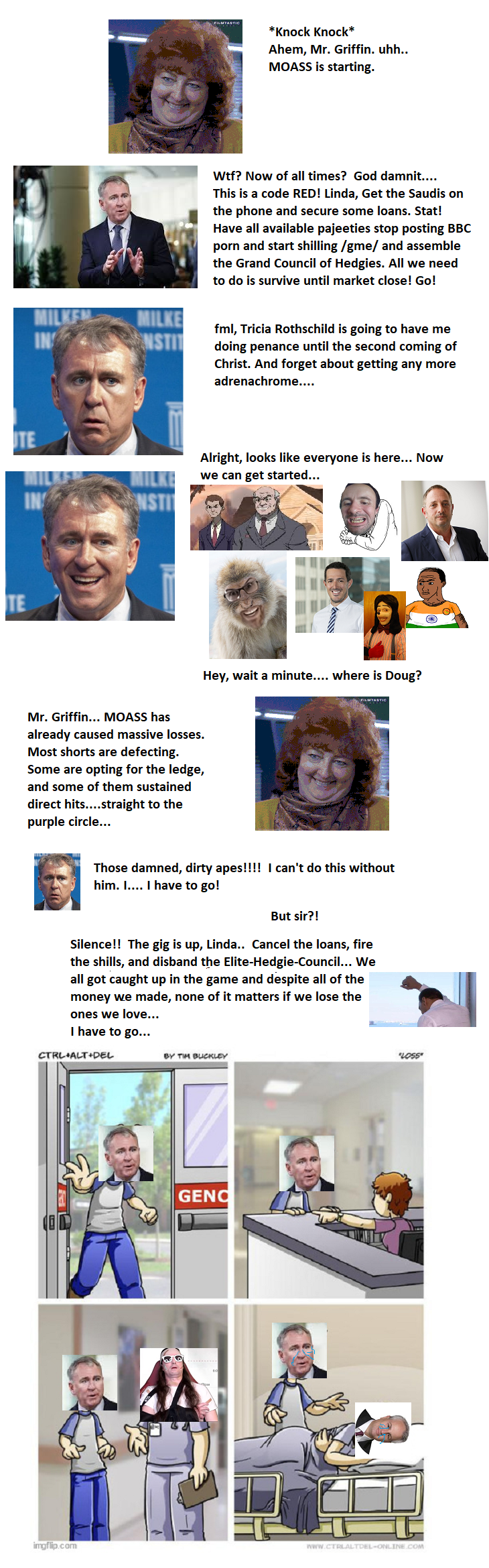 >Make GME price go upNooooooooo Ryan not like that! You have to leave them behind! I care about this more than getting paid for some reason! Look at all the IDs we spam in every thread! We’re the majority opinion! Consensus is with us! Conform to consensus opinion! Reeeeeeeeee!I don’t care if Ryan merges GME with deep sea shrimping, bum fights, trans meat, and the Mexican drug cartels as long as I get paid.