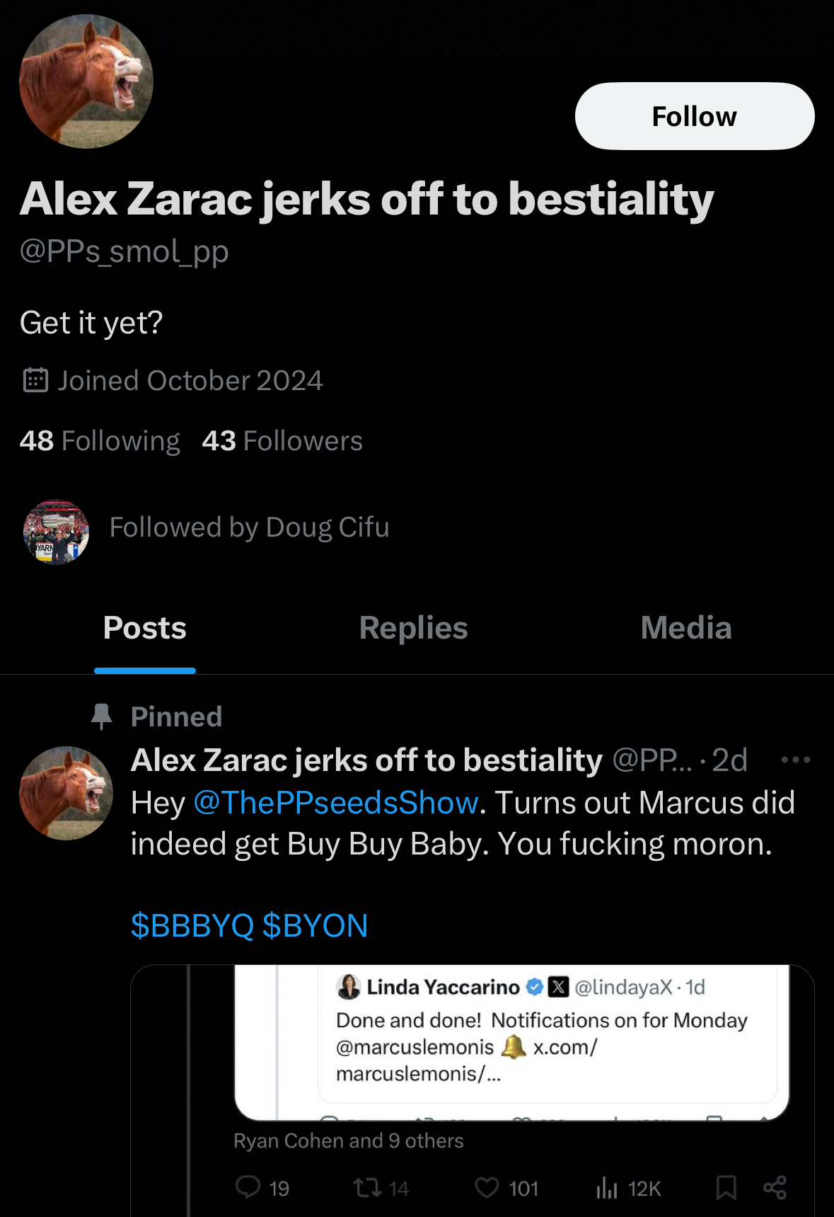 >>61907766Prove it and prove how bbbyw is being used to harm gme other than baseless accusations while you’re at. Please.