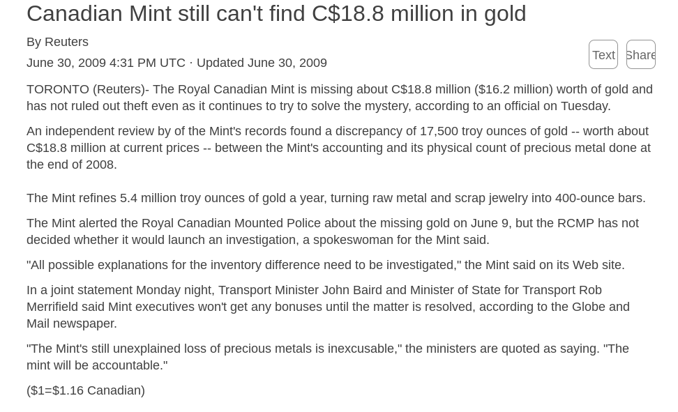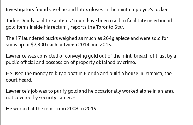 >>61901200>This can't be realThat article relates to the mint mistakenly selling "waste residue" from the refining process that still had significant gold content.The nigger didn't steal $18 million in gold. Blackie was caught because he was selling the gold to the bank and they called the police.Here's the correct image.
