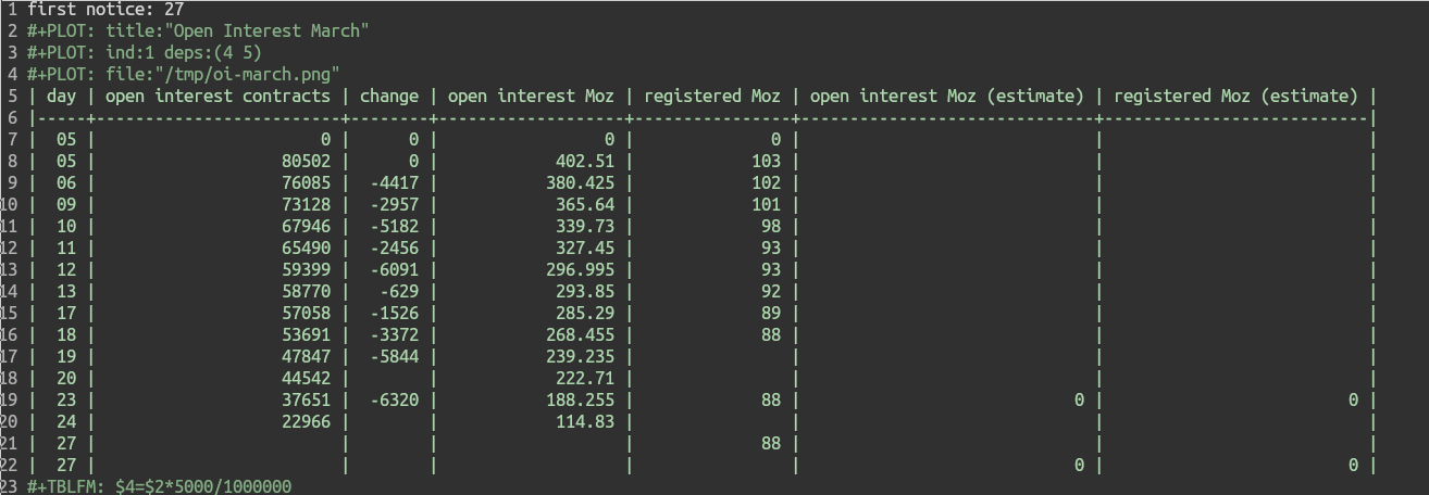 >>61901370As far as I can see the data and dates are correct, at least from the 5th on which is the earliest I have. The newest day in my table is the 24th. I get my data from https://www.cmegroup.com/markets/metals/precious/silver.volume.htmlPicrel is the raw (messy) table from which I make the graphs.