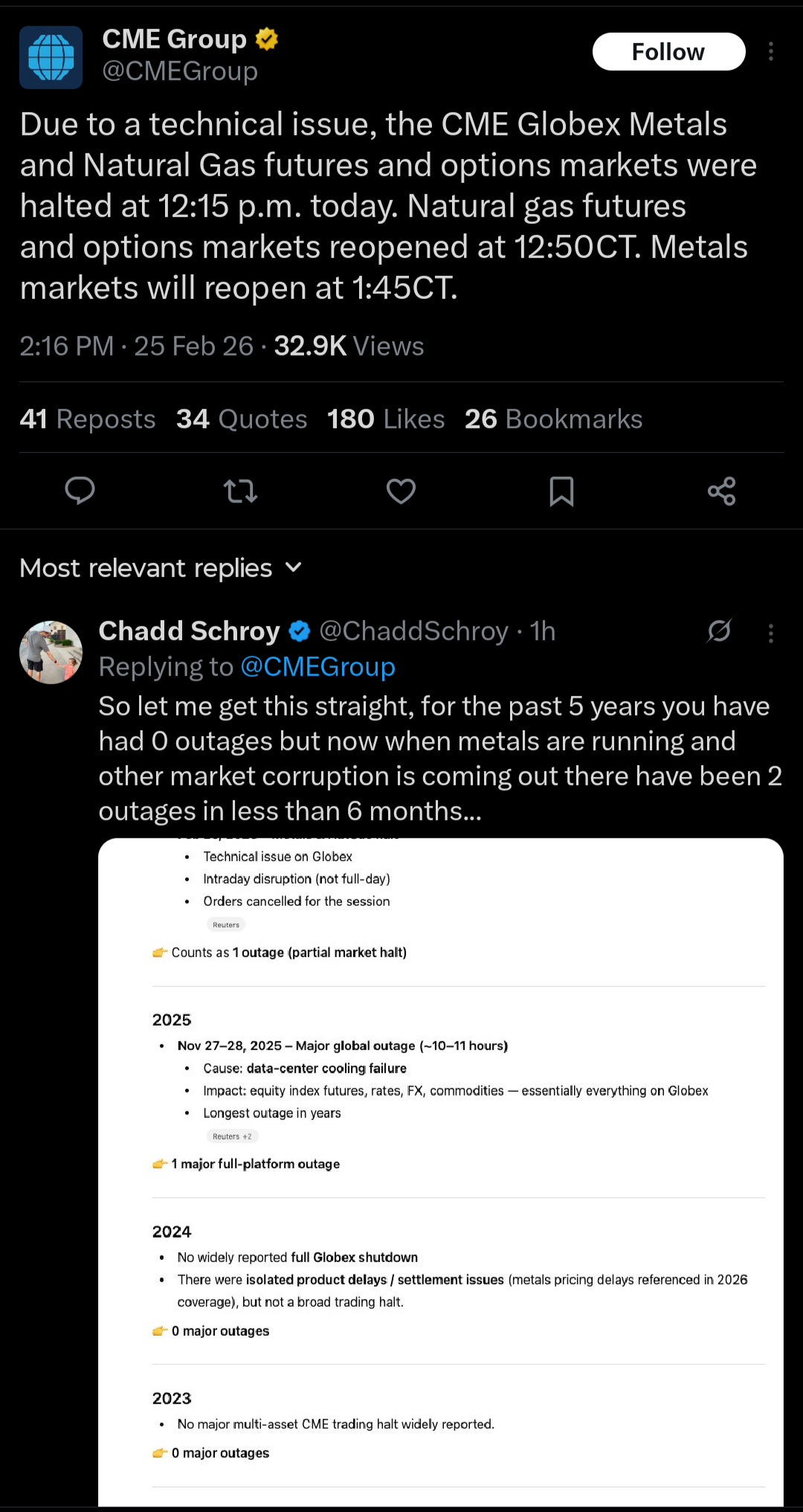 Someone tell CME to install a 2nd fan. The down time is inexcusable.
