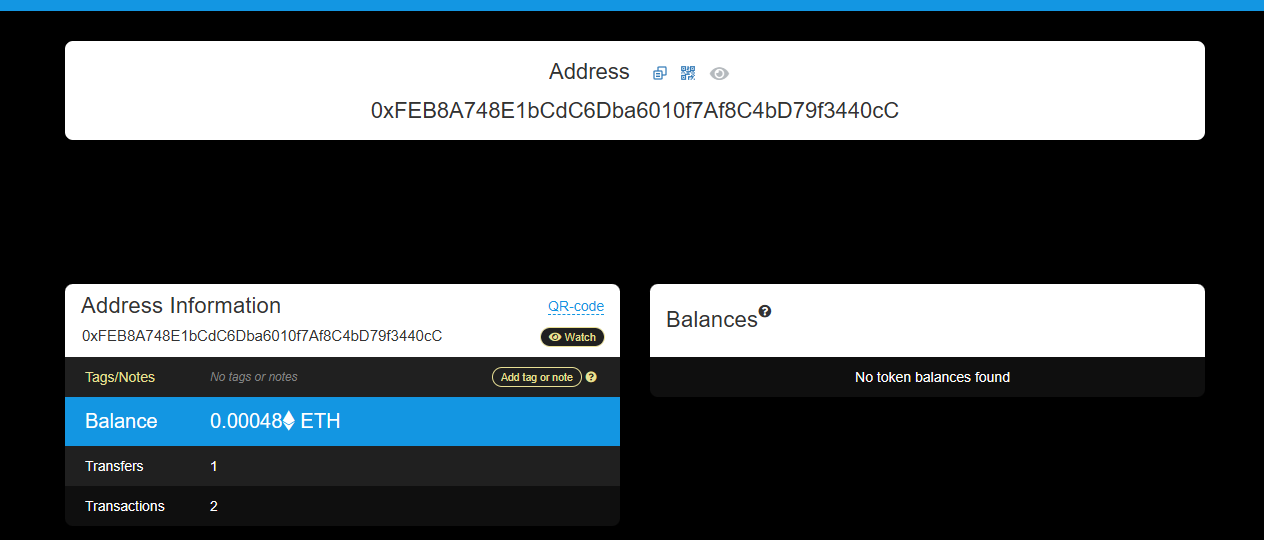 >>61904716https://www.ethvm.com/address/0xFEB8A748E1bCdC6Dba6010f7Af8C4bD79f3440cCThis address does not have any transfers
