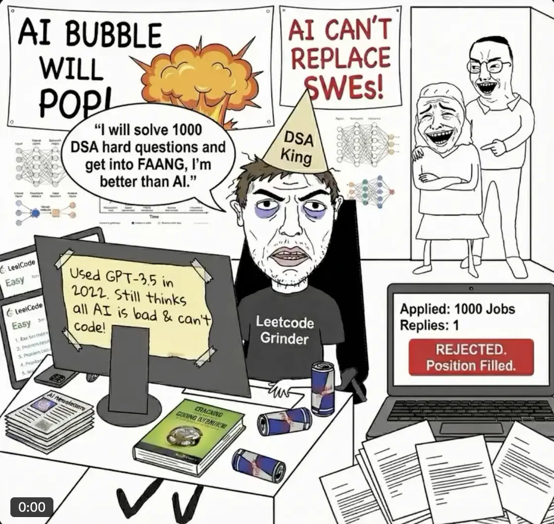 Morons. You have two outcomes:>AI replaces SWEsYou take advantage and build your own company/app with the same displacing tech.>AI doesn't replace youYou become part of a core tech team for an app/company that uses AI to string itself together.