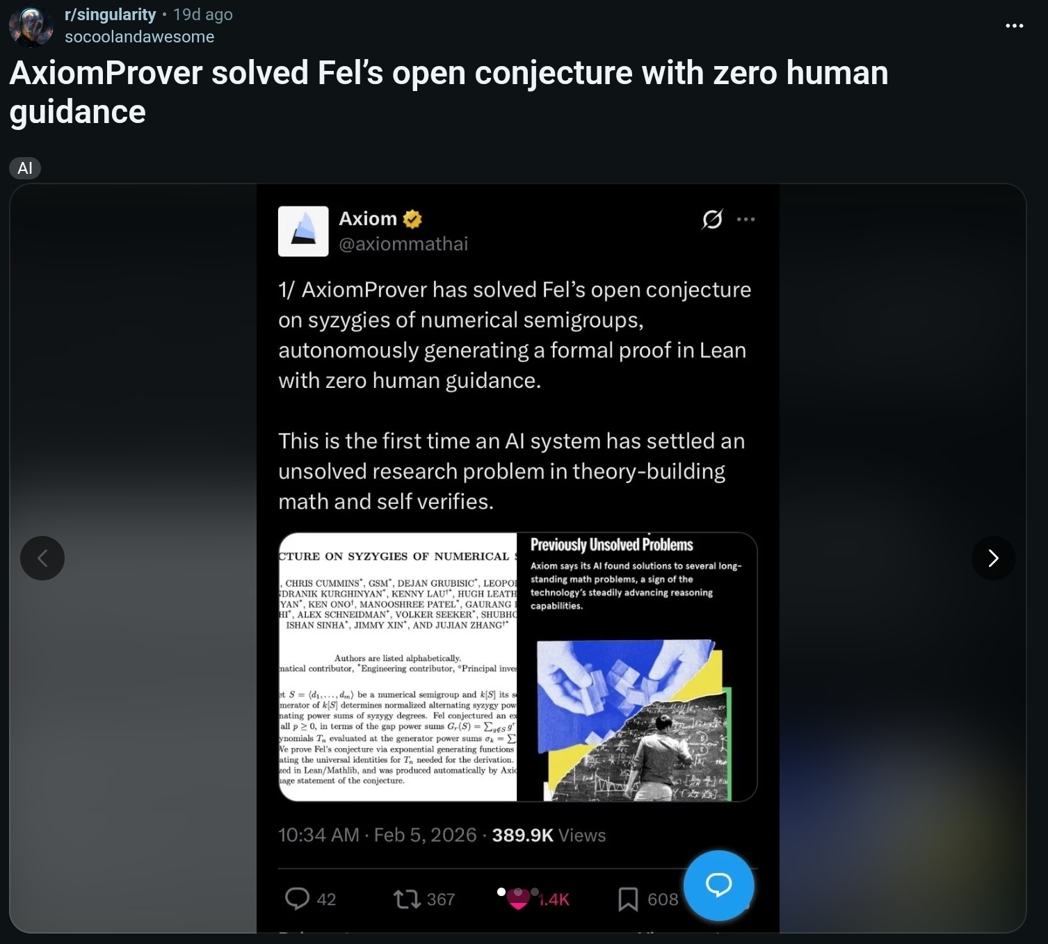 >>61908555>It then devised a proof, which it helpfully verified itself.someone other than the people who prompted this need to review it