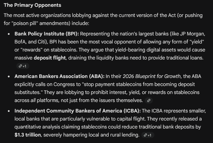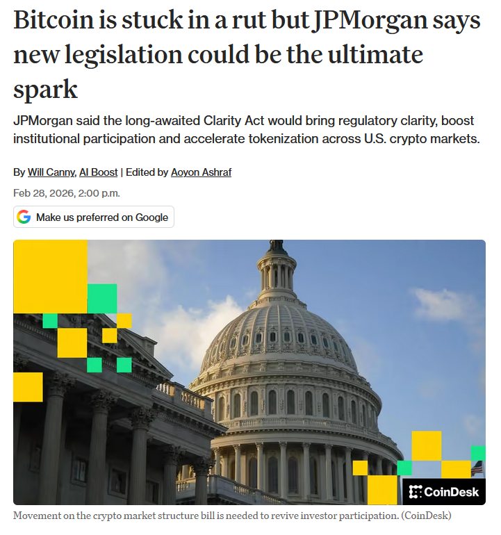 Today is March 1st, the "informal" deadline to finalize the Clarity Act, which has been called the most important legislation in the history of crypto. What do you think will happen? The odds are currently 63% in favor of passing on Polymarket. Banking lobbies have been throwing a fit because they are afraid that consumers will prefer 5% yield over 0.5% yield and move their deposits from the banking system to DeFi.