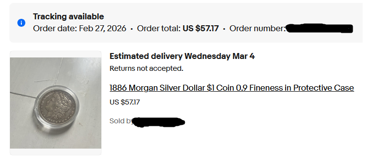 >>61921875this is one I'd just scored a couple days earlier, it's already in the mail, but it's from a guy who mostly sold fishing lures. If the automatic price reduction thing is true then I bet it happened to this guy too. The price gradient for morgans doesn't go down that far, it's been pretty steady at about $70, maybe $68 for culls, only the fake ones are any cheaper. This one pops up for $52 with free shipping? I bet the guy had the same thing happen, ebay chopped $25 off the price without him noticing and he just bit the pillow and mailed it off.