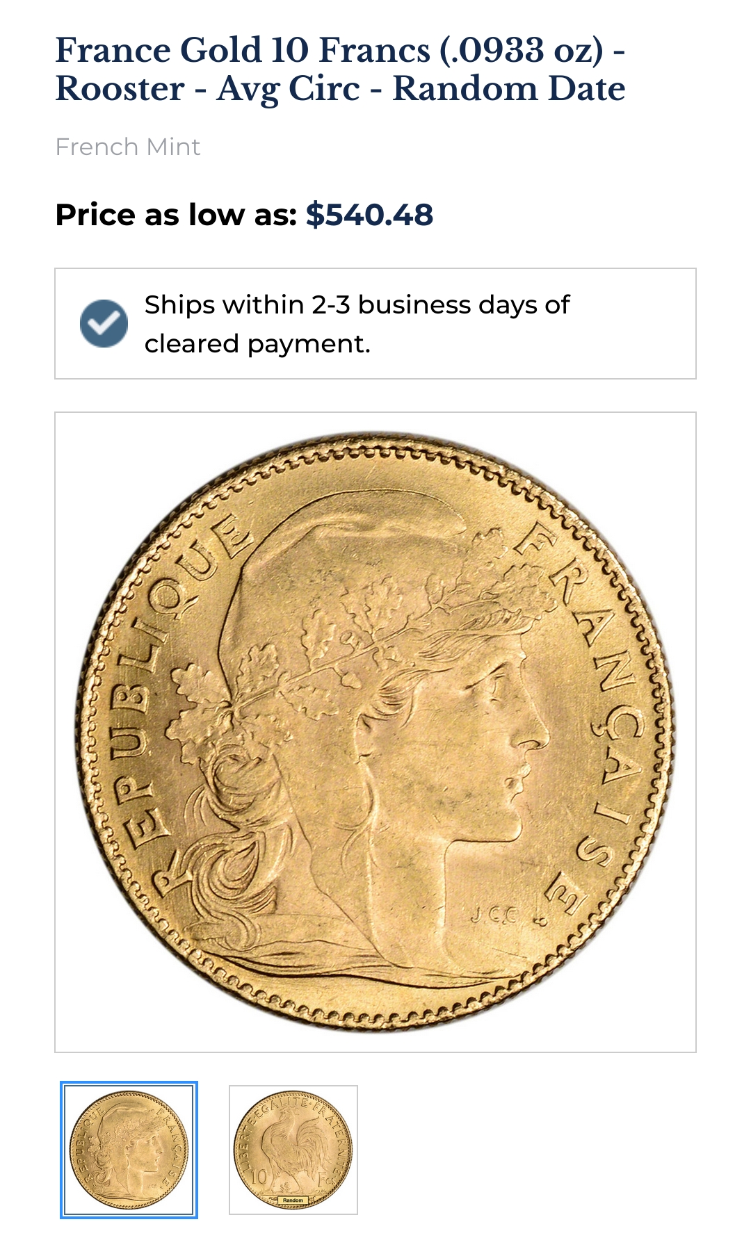 https://libertycoin.com/france-gold-10-francs-0933-oz-rooster-avg-circ-random-date-x-fr-g10franc-roost-avg/I think these are cool. Should I buy some?