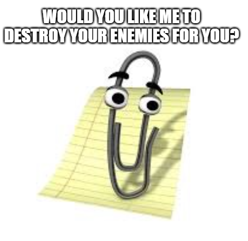 >Skynet is operational>Except it doesn't start a nuclear war>Instead its fucking Clippy asking if you need any help obliterating you enemies in hours, not days or months