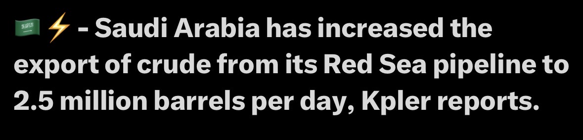 >>61938849wait a second.you mean to tell me the saudis have been aware of the hormuz shutdown strategy for a while now, and have already built a pipeline that can handle 50% of their crude oil output, that pipes out to the other side of the arabian peninsulaAnd they are... using it? For exactly what it was intended for, exactly when they need it most?Damn those saudis sure are smart. Diversify your infrastructure