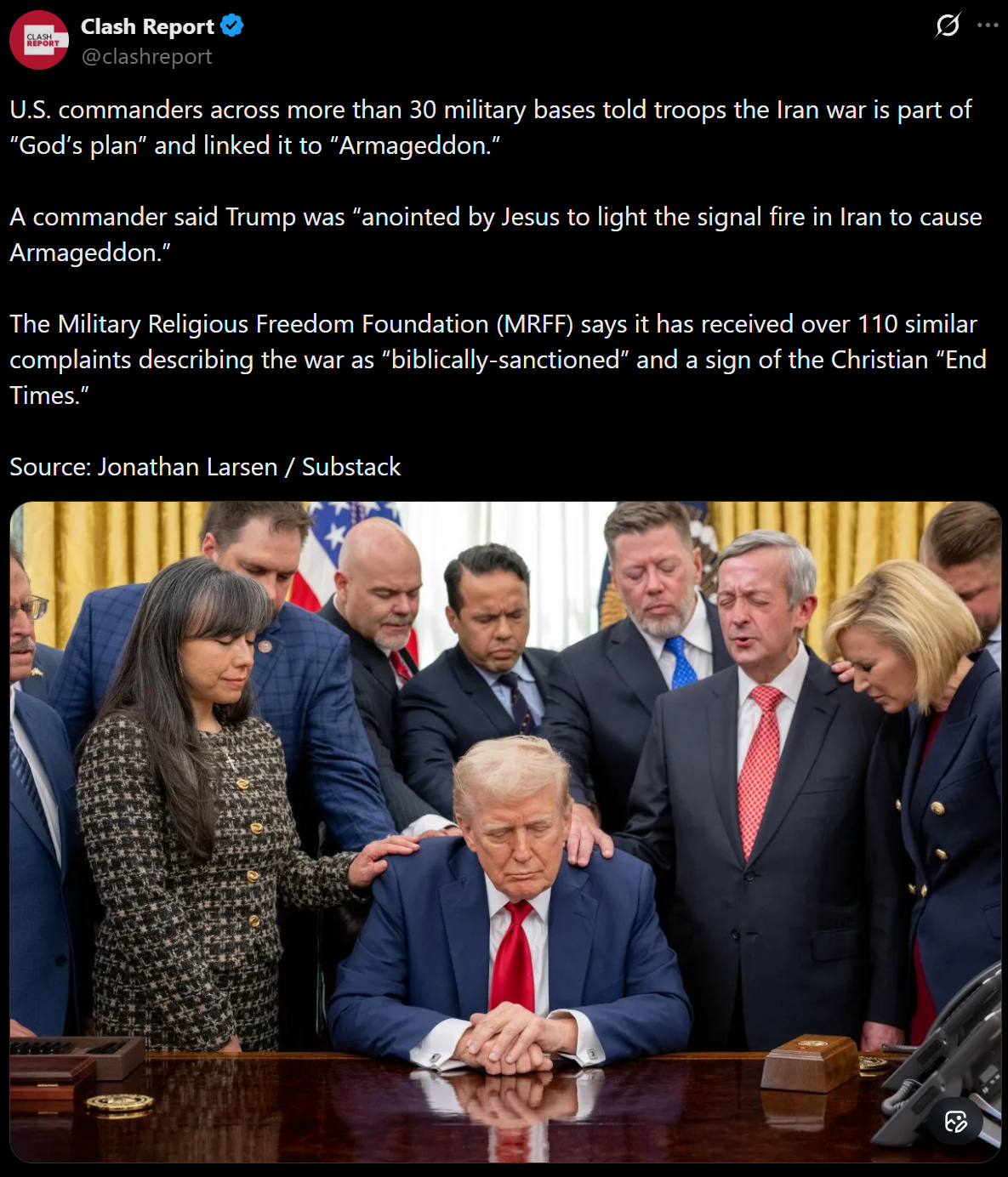 >>61938871Here you go, retard. It was widely reported. There are no sane people in charge to keep this conflict from escalating.https://www.independent.co.uk/news/world/americas/us-politics/trump-iran-armageddon-second-coming-complaint-b2931579.html