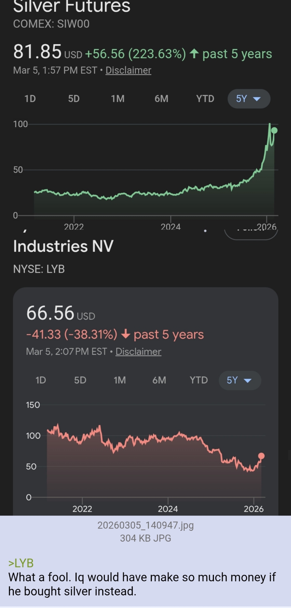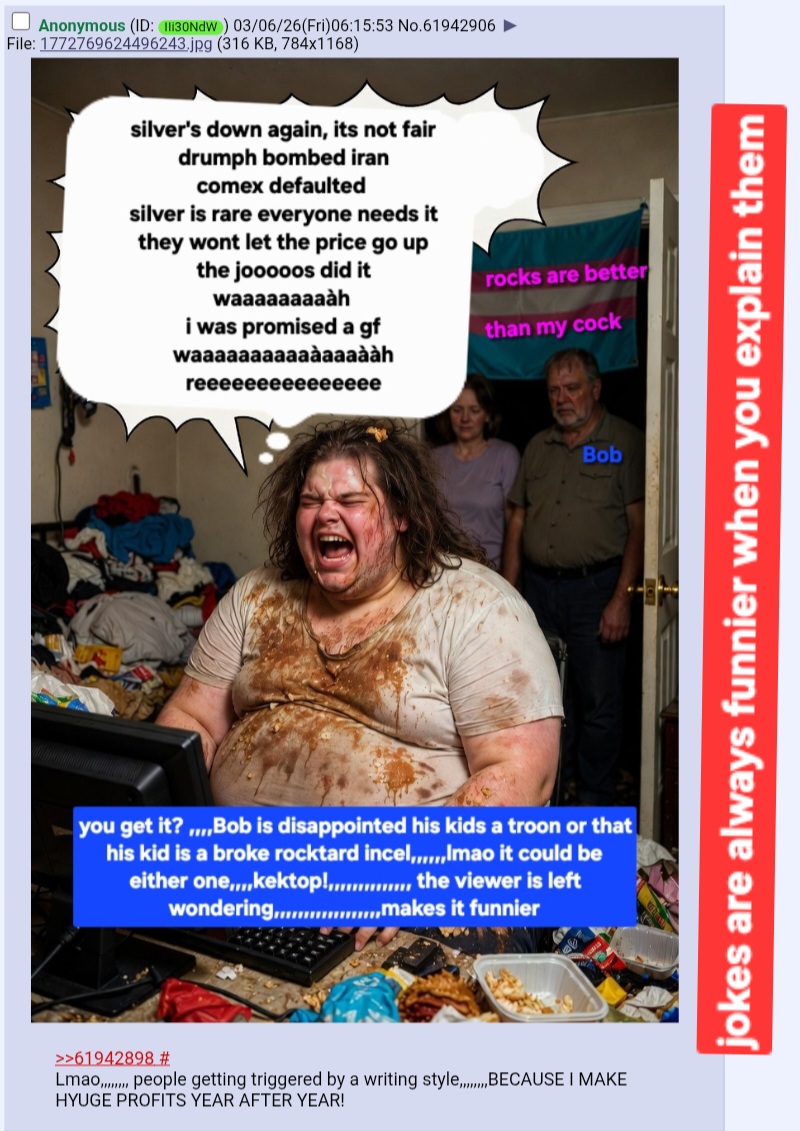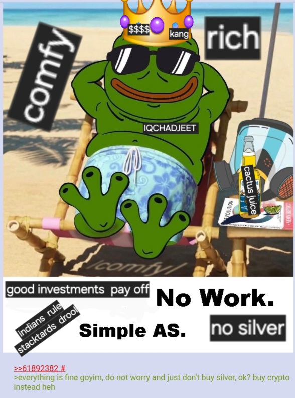 Ironically I sold to a Jew. There was another bullion dealer in my area who wasn't but he was a Boomer X cusp with the worst aspects of both generations who wasn't returning my calls. I think he folded but hasn't changed the message on the answering machine. It is not just the religion it is also a generational thing. The Jewish bullion dealer is an elder Millennial who knows his stuff. He was firm but fair. 94% of spot was especially good considering the 3rd giga dump happened an hour later. I kind of feel sorry for him that it happened but it looks like he knows what he was doing. I might make a meme out of this picture. "Lets screw the goyim by shorting silver." "My Jewish bullion dealer an hour after I sold."