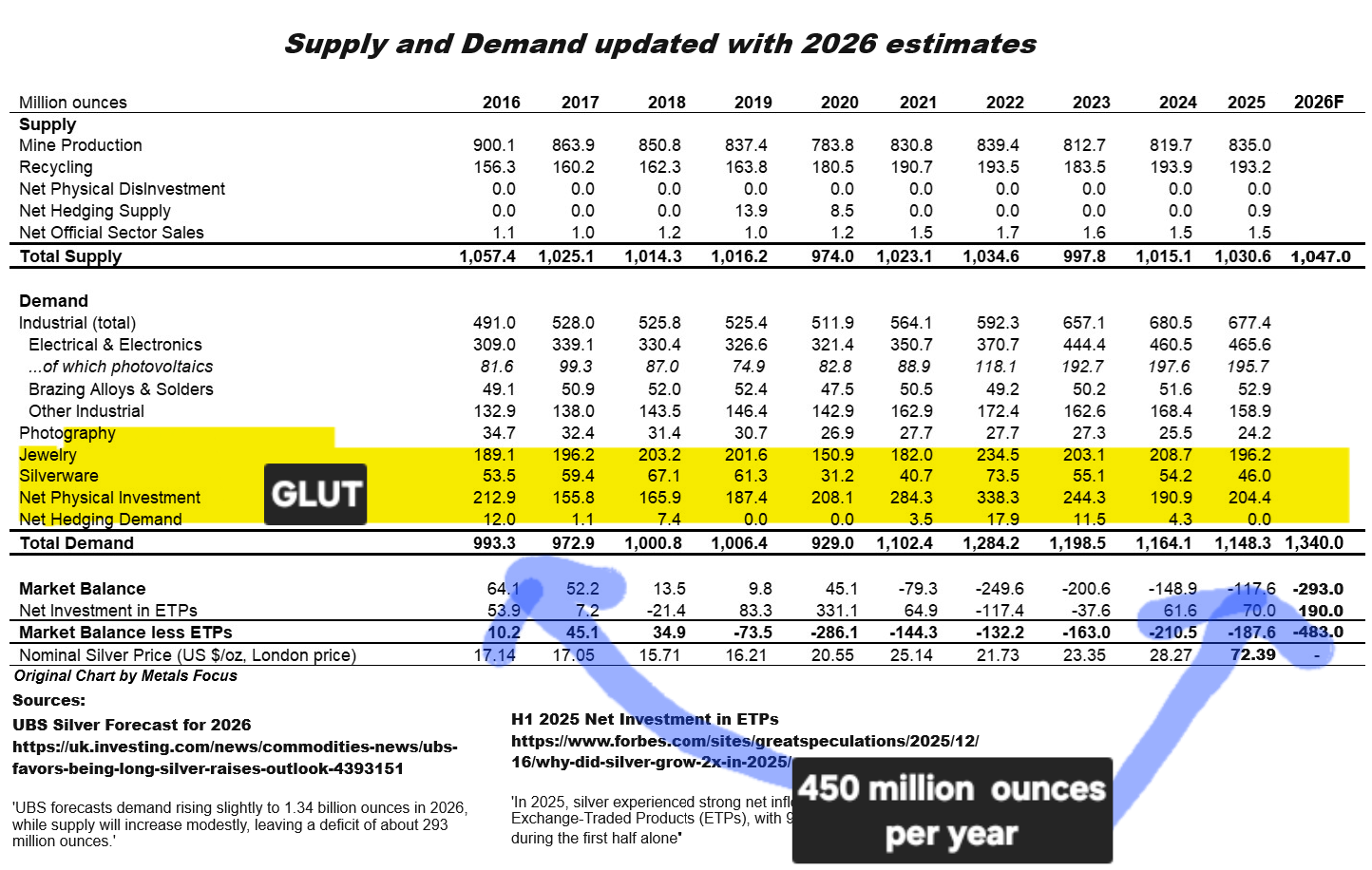 but your chart says that in 2026 there'll be a demand 293 million more ounces greater than the supply?