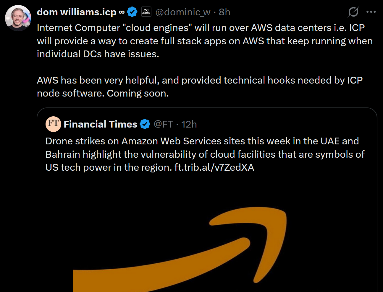 >>61945855Nope Amazon team worked with ICP