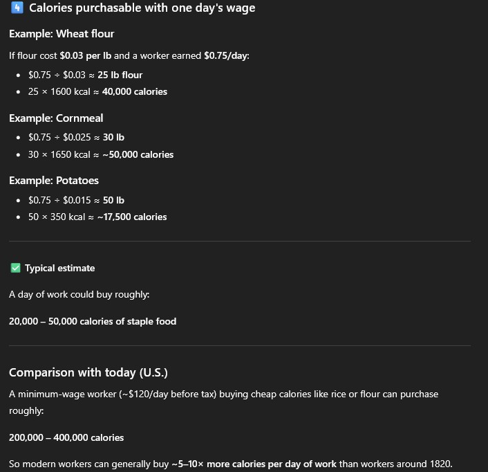 americans today can buy 1 year of calories with 1 day of work, thats a really good deal. if theres ever a return to normal over the next few decades it would be at least a 10x in real terms, whatever $ price that turns out to be